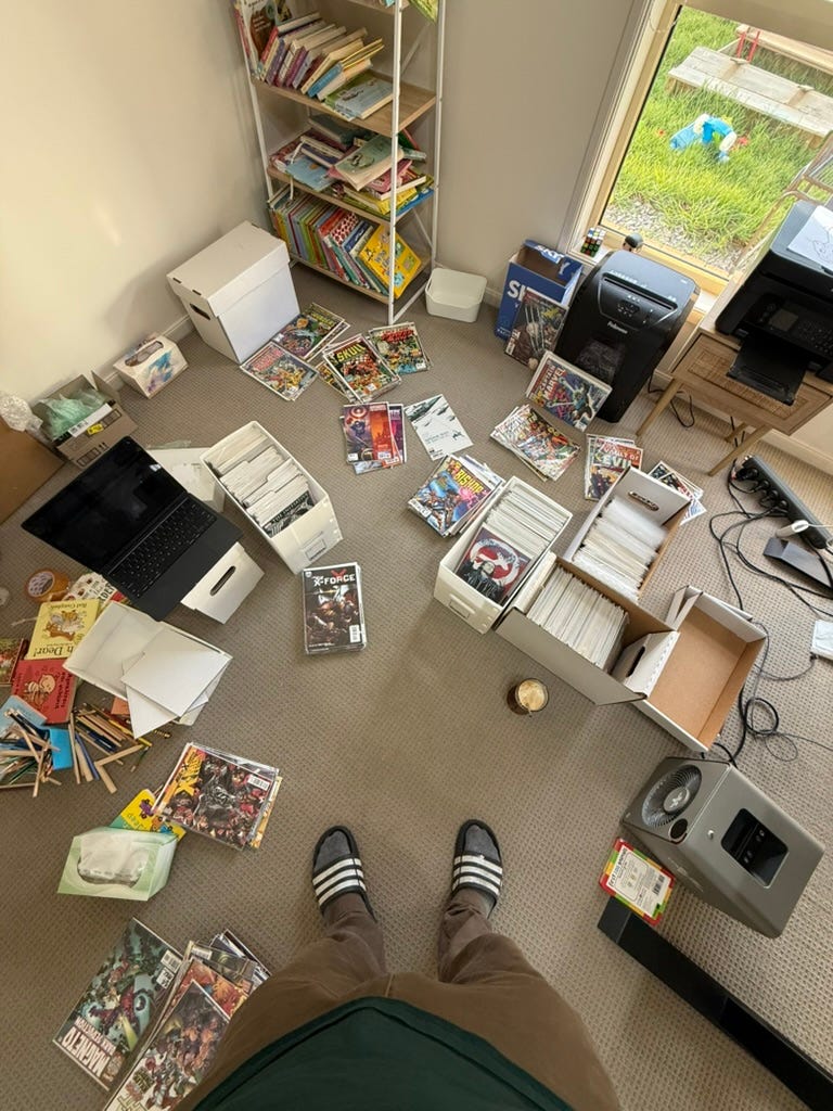 I am late for the first time in 31 weeks. Well, not late globally but definitely late within Australia, so apologies to my fellow comic enthusiasts down under. Why you ask? Well, I decided to thin the herd and started putting part of my collection on eBay. That means that I had about 2000 comics on the floor of my office, while being sick… taking care of two sick kids, uploading things on eBay :D